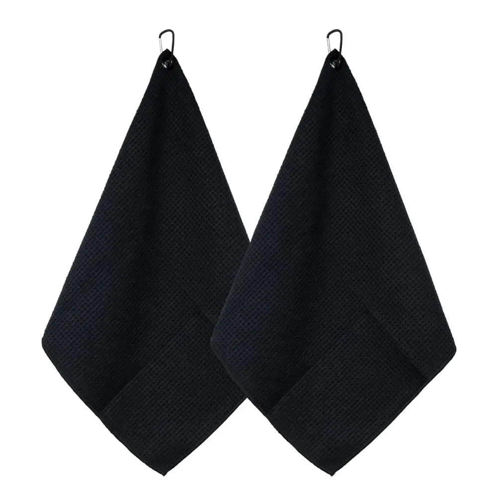 2pcs Golf Towels - Microfiber Fabric Waffle Pattern 16’’×16’’(Black)